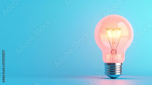 Glowing pink lightbulb, blue background, idea concept, website banner