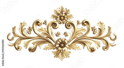 gold, ornament, floral, design, element, decoration, swirl, leaf, acanthus, baroque, rococo, vintage, antique, classic, elegant, luxury, royals, ornate, pattern, detail, scroll, flourish, frame, border, motif, art, graphic, illustration, texture, background, symmetric, three-dimensional, render, isolated, white, style, shape, image, picture, template, vector, retro, decor