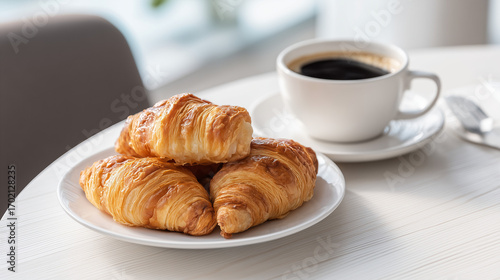 Golden Brown Croissants and Coffee on White Table