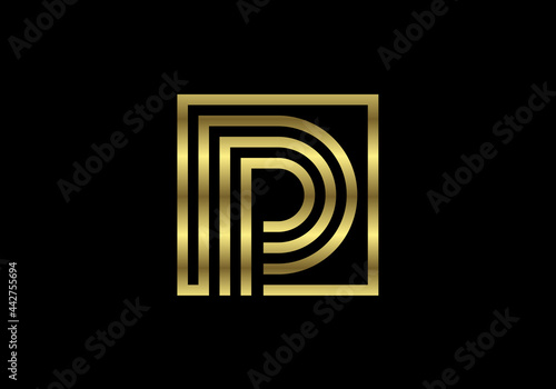 Golden Capital Lines Letter P. Creative Line Letters Design, Graphic Alphabet Symbol For Logo, Poster, Invitation. Vector Illustration