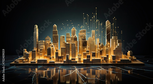 Golden city chart against a dark backdrop, illustrating financial growth, generative AI