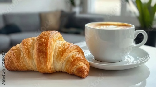 Golden Croissant and Latte - Perfect Morning Delight