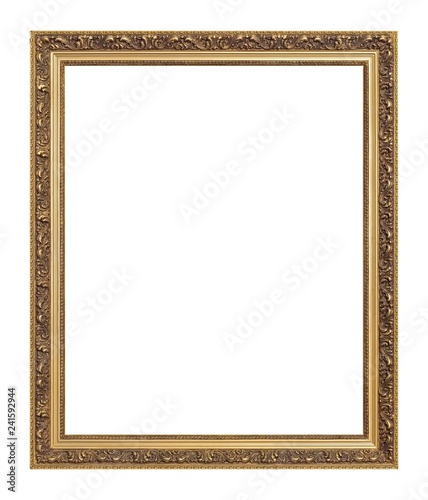 Golden frame for paintings, mirrors or photo isolated on white background