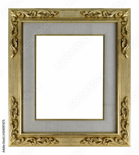 Golden frame for paintings, mirrors or photo isolated on white background