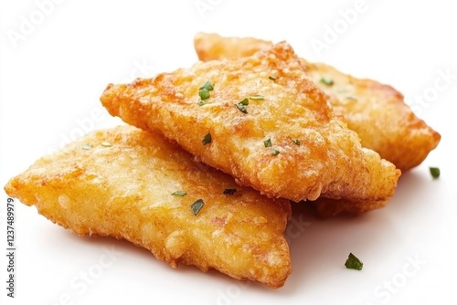 potato, triangle, fried, gold, herb, garnish, food, dish, cookery, culinary, snack, tasty, delicious, crunchy, crispy, savoury, salty, texture, colours, white, background, isolated, photo, close, up, detail, eat, meal, dinner, lunch, breakfast, eatery, kitchen, cooking, receipe, ingredient, preparation, healthy, unhealthy, carb, vegetable, side, main, course