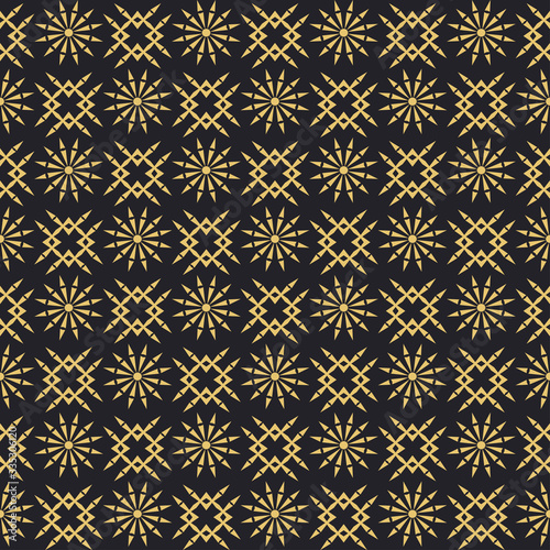 Golden geometric pattern in Asian style on a black background. Texture design: textiles, seamless wallpaper, wrapping paper.