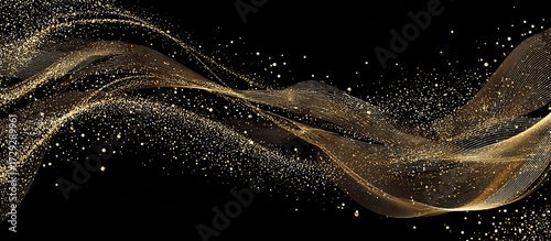 Golden glittering particles flowing on black background