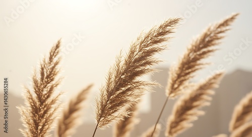 Golden Hour Pampas Grass Silhouettes: Gentle Breeze Whispering Through Dried Reeds in Dreamy, Soft Focus Aesthetic at Sunset, Evoking Serenity and Natural Beauty of the Autumn Season.