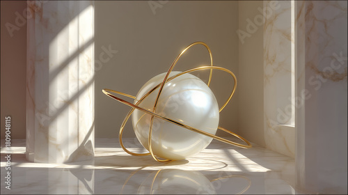 Golden Orb in Minimalist Light Chamber