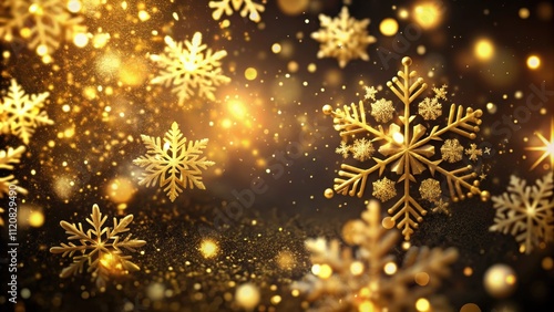holiday, gold, snowflake, particle, dark, elegant, surface, sparkling, festive, celebration, winter, christmas, decoration, magic, luxury, background, texture, shimmering, glowing, december, seasonal, ornament, abstract
