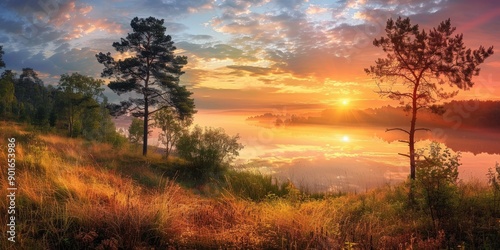 sunrise, lake, tree, water, sky, nature, gold, dawn, landscape, hill, peaceful, morning, calm, beautiful, cloud, sun, forest, fog, mist, horizon, vibrant, serene, tranquil, rural, scenic, ray, of, light, colours, photo, photo, hours, outdoors, travel, idylli, breathtaking