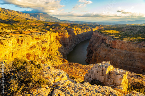 Golden sunset at Bighorn Canyon Devils Canyon Overlook scenic view