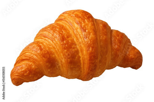 Golden-brown croissant freshly baking, crisp exterior revealing flaky layers against transparent backdrop