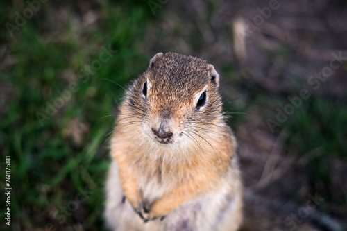 Gopher's portrait close up. ground squirrel close up. rodent portrait.