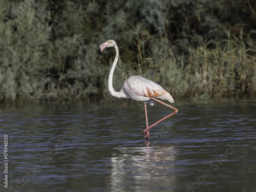 Greater Flamingo Walking on the Pond