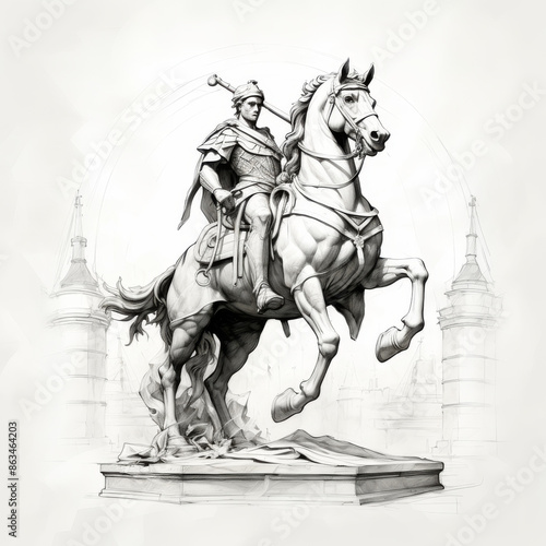 horse, statue, vector, illustration, riding, vintage, art, sculpture, old, warrior, rider, soldier, woman, drawing