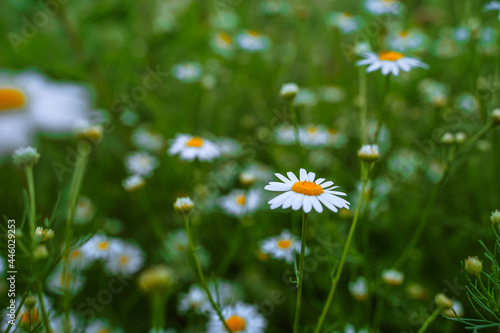 daisy, flower, nature, summer, background, plant, meadow, chamomile, beauty, grass, green, floral, day, sun, white, field, blossom, spring, sunny, beautiful, fresh, yellow, garden, season, sunlight, lawn, bloom, flora, environment, natural, bright, wildflower, growth, closeup, pattern, landscape, freshness, springtime, design, horizontal, no people, photo, abstract, green background, leaf, blooming, colored background