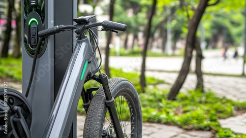 sustainable, transportation, electric, bike, charging, station, urban, park, energy, stock, photo, green, technology, alternative, infrastructure, city, living, environment, renewable, mobility, vehicle, clean, futuristic, recharge, cycling, lifestyle, landscape, environmentally, friendly, vibrant, colours