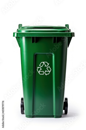 Green Garbage Container with Recycling Symbol, green recycling bin
