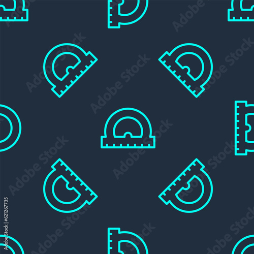 Green line Protractor grid for measuring degrees icon isolated seamless pattern on blue background. Tilt angle meter. Measuring tool. Geometric symbol. Vector