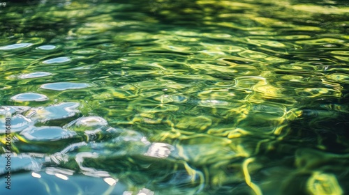 Green water ripples, sunlit pond, nature background, serenity