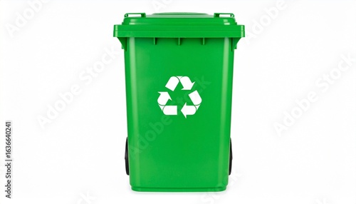 recycling, bin, green, wheeled, plastic, lid, symbol, arrow, triangle, eco, sustainability, waste, sorting, management, environment, clean, container, garbage, denied, urban, municipal, household, industrial, portable, compact, modern, empty, full, closed, open, handle, design, object, solid, shadow, light, background, public, service, practical, storage, utility, collection, awareness, responsibility, environmentally friendly