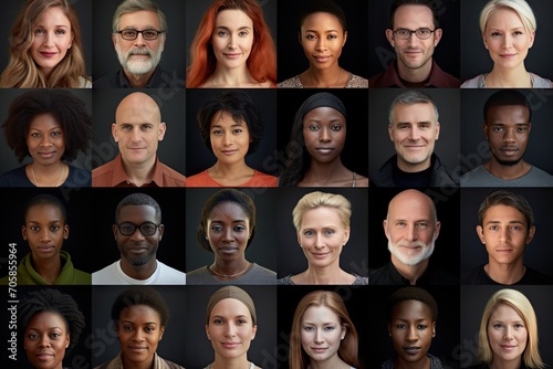 Grid image of diverse group of people of different ages and genders and ethnicities