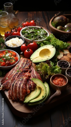 food, meat, meal, dinner, plate, beef, salad, steak, vegetable, cookery, dish, grilled, epicure, lunch, white, green, pork meat, tomatoes, eatery, roasted, fried, lamb, chicken, delicious
