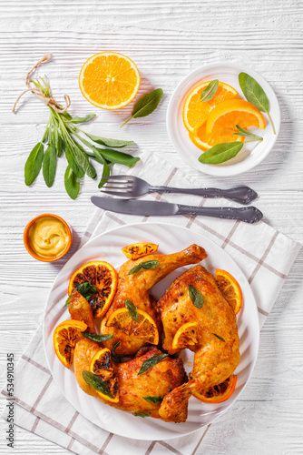 Grilled Orange roast Chicken legs with sage