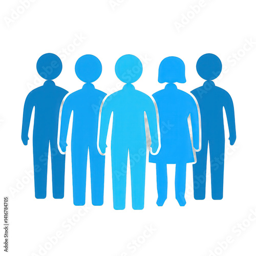 Group of five stylized human figures in blue, representing diversity and unity, set against a simple background, ideal for illustrating teamwork concepts , isolated on white or transparent png