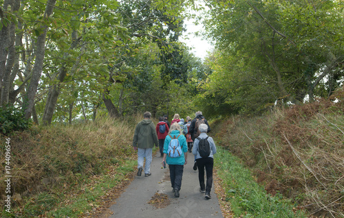 Groupe de randonneurs sur un sentier en Bretagne - France