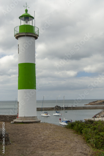 Habour light and light house navigation mark in the Anse de Doelan in south Brittany, France