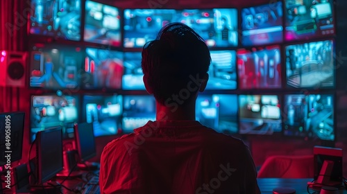 Hacker Coordinating Cyber Attack Monitoring Multiple Security Feeds