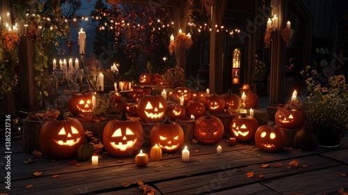 Halloween Jack-o'-Lanterns Decorated Outdoor Patio