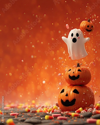 halloween, ghost, neon, haunted, skittish, pumpkin, smiling, floating, lantern, holiday, pumpkin, autumn, cartoon, illustration, christmas, orange, celebration, decoration, toy, party, design, frame, fun, october, card, baby, animal, horror, bear, season, gift
