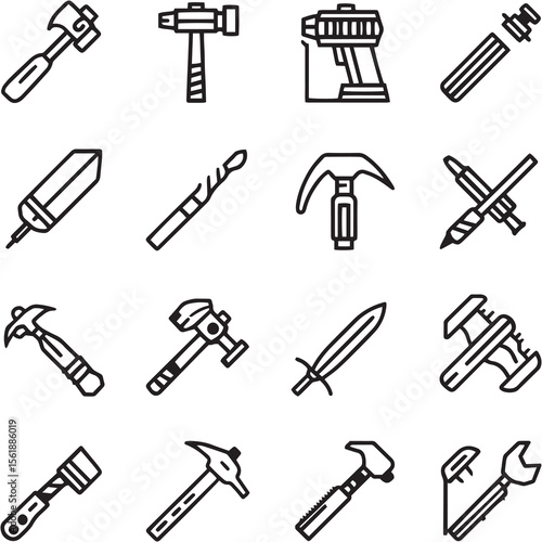 Hammer Black Line Editable Icons set