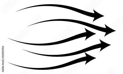 Hand drawn black arrows collection Set, simple flat curved arrows isolated on white background. Vector set of trendy long Direction arrows left and right in flat style, eps10