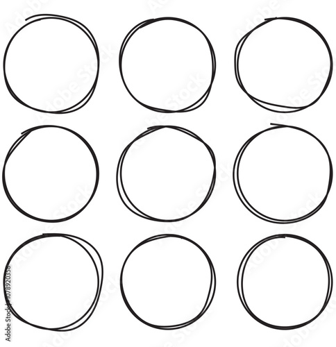 hand drawn circle line sketch circular vector , vector brush stroke circle on a white background