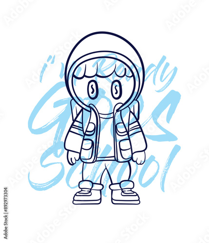 hand drawn monster illustration with text i'm ready goes to school for t-shirt design