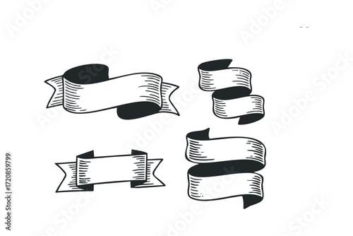 ribbon, label, badge, text, frame, award, grunge, vintage, graphic, paper, old, hand, drawn, scroll, banner, background, symbol, object, simple, outline, insignia, collection, blank, headline, element
