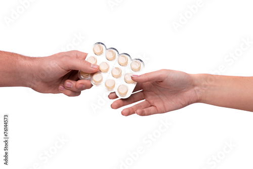 Hand giving lozenges in blister