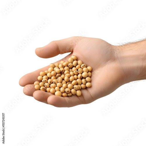Hand holding soybeans, isolated on a white background. png