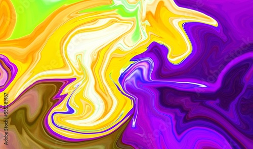 Hand Painted Background With Mixed Liquid Purple And Yellow Paints. Abstract Fluid Acrylic Painting. Marbled Colorful Abstract Background. Liquid Marble Pattern.