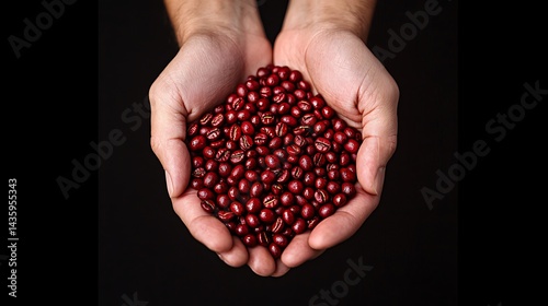 Handful of Reddish-Brown Seeds Against Black Backdrop, Depicting Abundance, Natural Harvest, and Organic Material Held Gently.