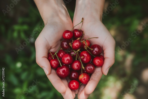 cherry, hand, red, ripe, fresh, natural, green, background, holding, fruit, organic, healthy, harvest, summer, sweet, nourishment, snack, vegetarian, garden, farming, nature, juicy, delicious, vitamin, produce, picked, bunch, care, tenderness, agriculture, seasonal, freshness, dietary, dessert, vibrant, culinary, ingredient, wellness, foliage, lush, epicure, shiny, picking, fats, bounty, abundance, outdoors, rural