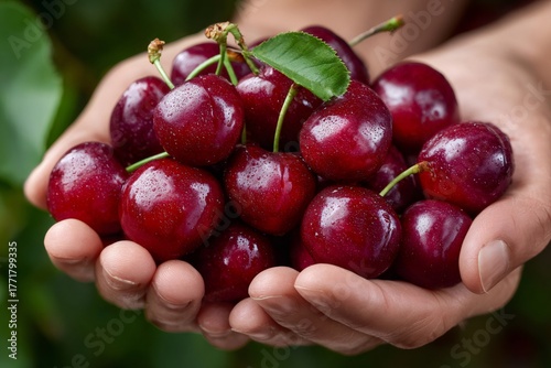 cherry, hand, holding, fresh, fruit, red, harvest, healthy, natural, food, sweet, ripe, farm, farming, organic, agriculture, garden, summer, berry, raw, vegan, antioxidant, nourishment, juicy, wet, waterdrop, produce, picked, closeup, closeup, person, cultivating, growing, delicious, dessert, snack, natural food, plant, vitamin, season, ingredient, botanical, healthy eating, well-being, abundance, generating, farmers market, springtime