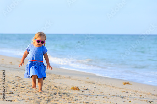 happy cute little girl run on beach