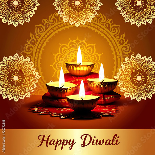 happy diwali background with burning candles, dark and blurred background