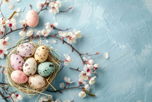 Happy Easter Eggs Basket sunrise service. Bunny hopping in flower silly decoration. Adorable hare 3d Watercolor rabbit illustration. Holy week easter festive hunt Tailored greeting card forgiveness
