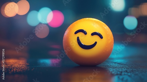 happy, smile, face, yellow, light, night, city, expression, digital, emotion, mood, joy, positive, virtual, cyberspace, communication, social, message, reaction, cartoon, graphic, illustration, design, three-dimensional, rendering, animation, technology, modern, visual, content, character, icon, fun, cute, blur, nightlife, feeling, contentment, pleasure, optimistic, vibrant, emoticon, interaction, symbol